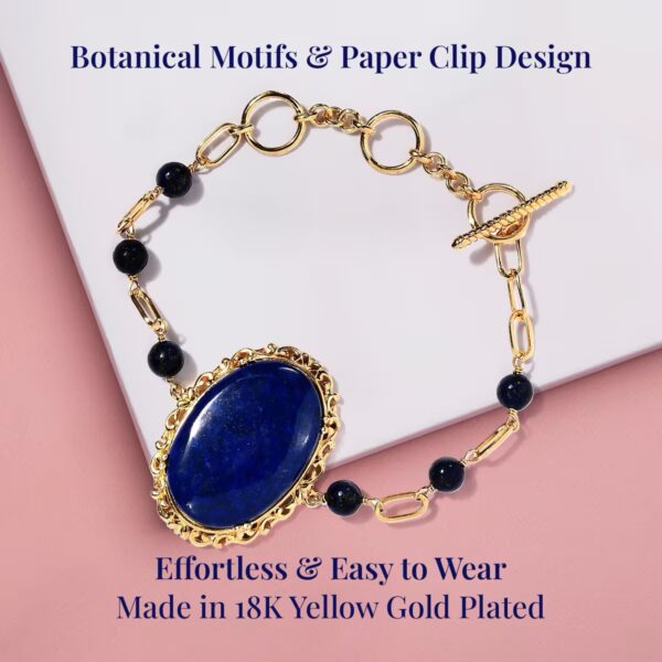 💙 Karis Collection Lapis Lazuli Toggle Bracelet – 18K Gold Plated Paperclip Chain | 6.5” | 62.75 ctw