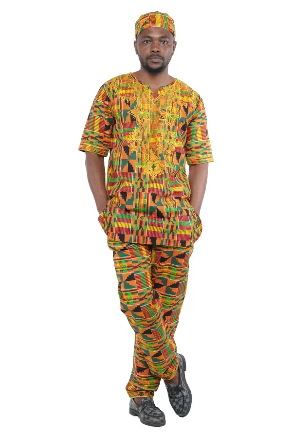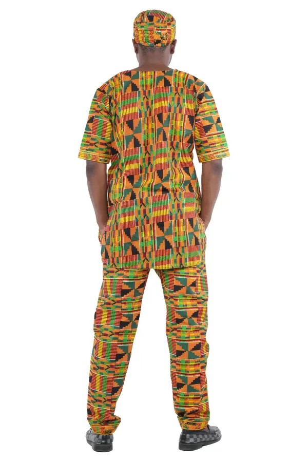 04 -Men’s Kente Print Two-Piece Cotton Pant Set – Size XL
