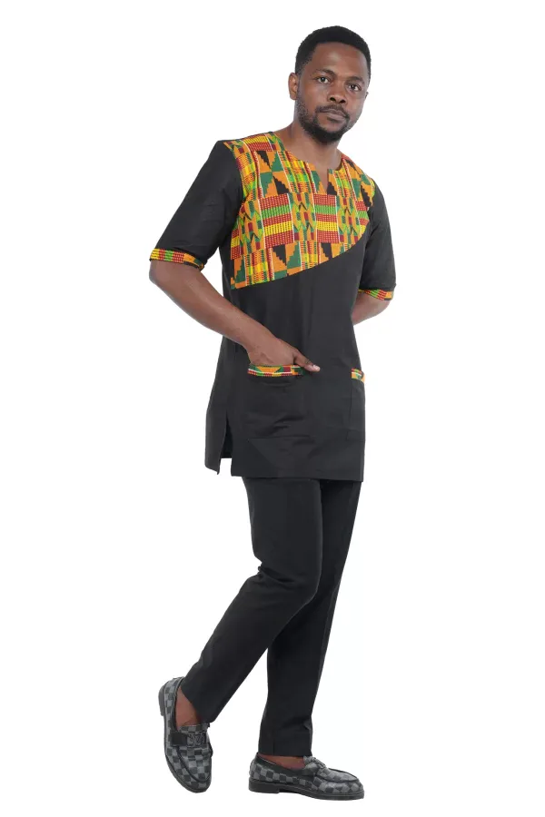 09 – Kente Accent Black T-Shirt