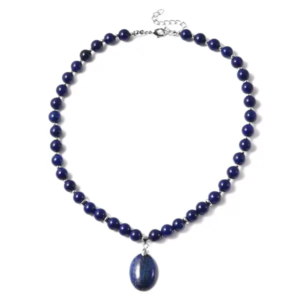 Make a bold yet timeless statement with this genuine lapis lazuli beaded necklace featuring a large oval lapis pendant. Designed with rich navy-blue lapis beads and finished in polished silvertone metal, this necklace delivers natural beauty with elegant structure.