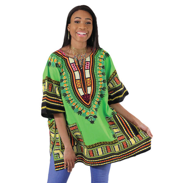 Our Dashiki celebrates timeless African fashion. It’s a comfortable fit for any size, making it a go-to choice for all your favorite occasions. This dashiki is a celebration of culture and community, commonly chosen for weddings, school events, church activities, and family gatherings. This dashiki can be paired with numerous bottoms, offering versatility and style.