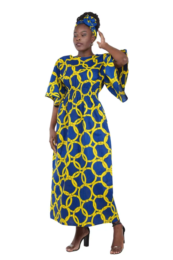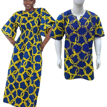 Royal Unity African Couples Set – Blue & Yellow Matching Outfit (Fits Women S–L, Men up to 1XL)