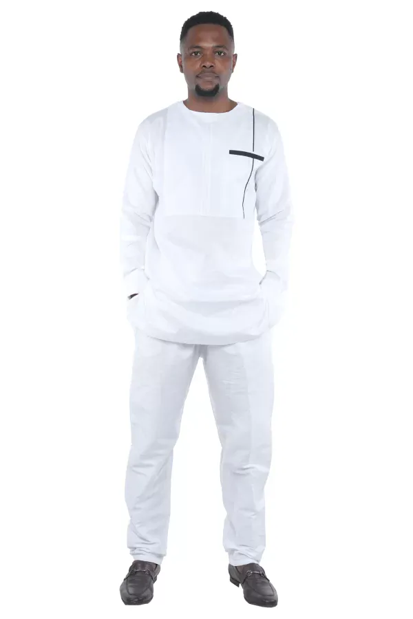 01 – Men’s White Two-Piece Cotton Pant Set