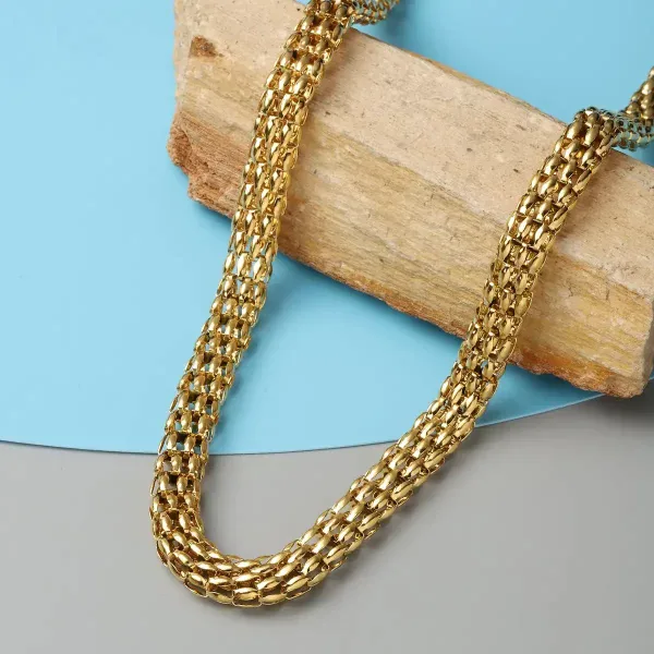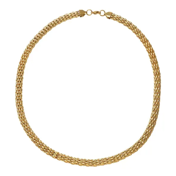 Gold mesh chain necklace with flexible woven texture