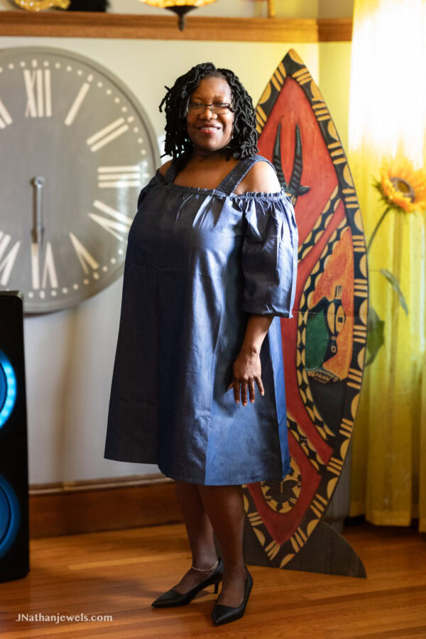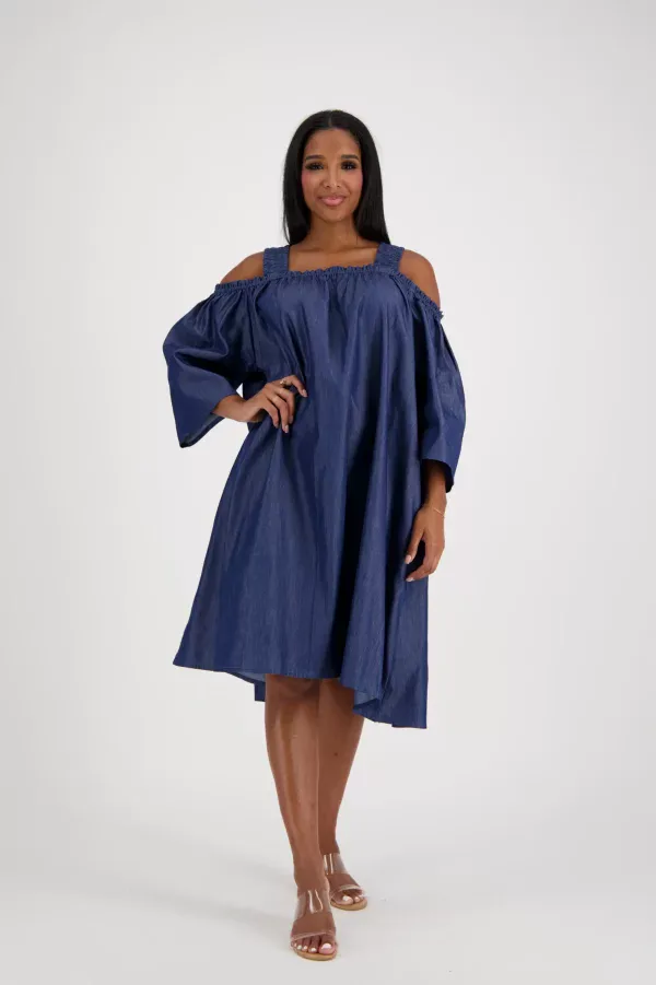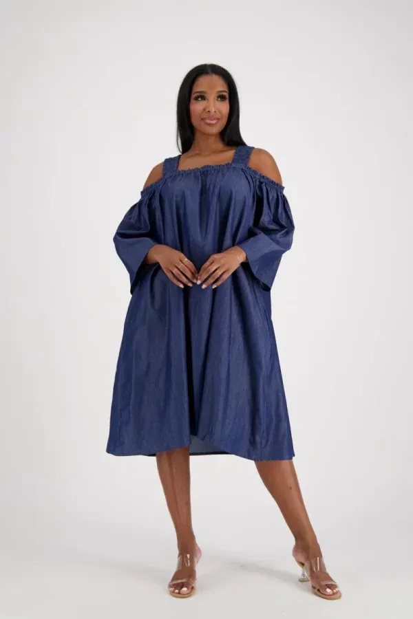 0005 – Indigo Grace Off-Shoulder Denim Dress