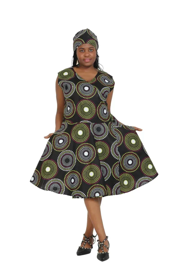 Radiance Circle Sleeveless Ankara Dress – Fits M to XL