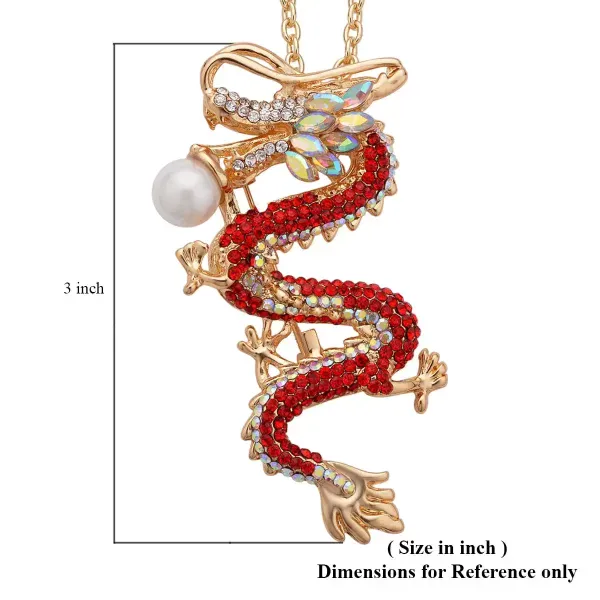 Make a bold statement with this Austrian crystal dragon brooch pendant necklace. This eye-catching piece features red resin, sparkling crystals, and goldtone metal. You can wear it as a long pendant necklace or remove the chain and style it as a brooch.