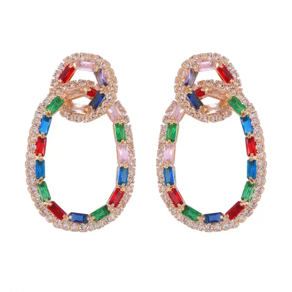 Elevate your statement style with these ColorBurst Luxe Oval Drop Earrings, featuring 80 prong-set Austrian crystals in a refined multicolor arrangement. The structured double-loop silhouette blends baguette and round stones for a dimensional, high-impact finish.