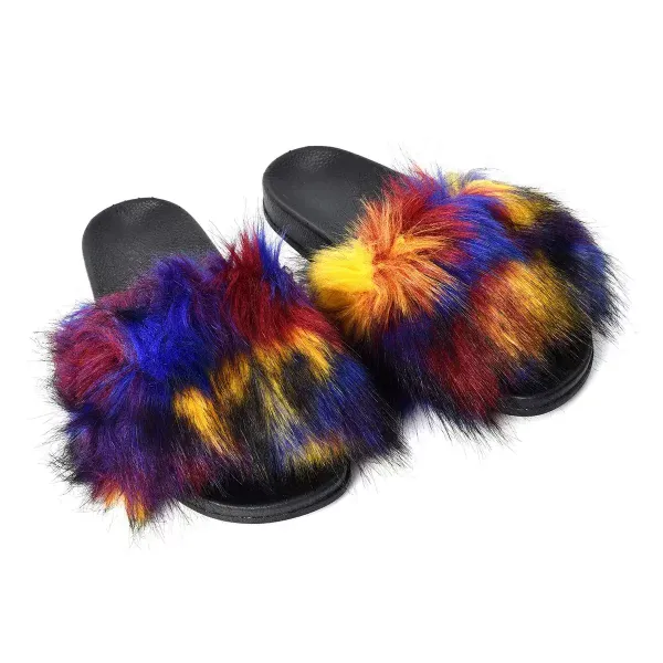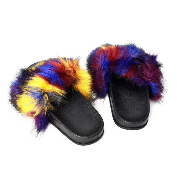 Add bold comfort to your everyday style with these Multicolor Faux Fur Slide Sandals. Designed for effortless wear, these vibrant fluffy slides combine plush faux fur with a durable rubber sole for a statement look that feels as good as it looks.