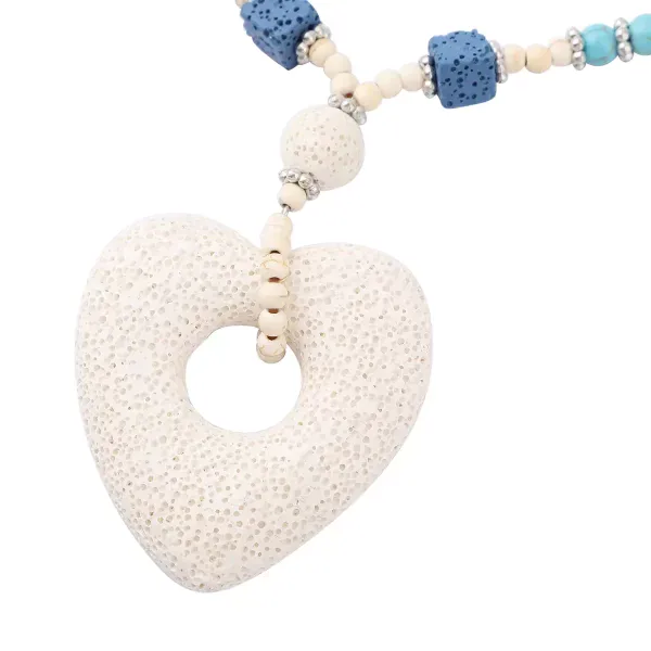 Add color and meaning to your jewelry collection with this multi-color lava beads and howlite heart charm necklace. Designed with natural lava beads, blue howlite, and white howlite gemstones, this 28-inch beaded necklace blends earthy texture with soft, calming tones.