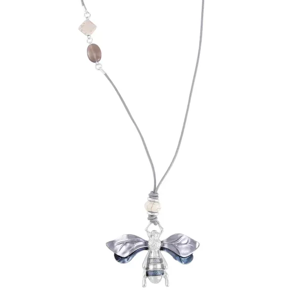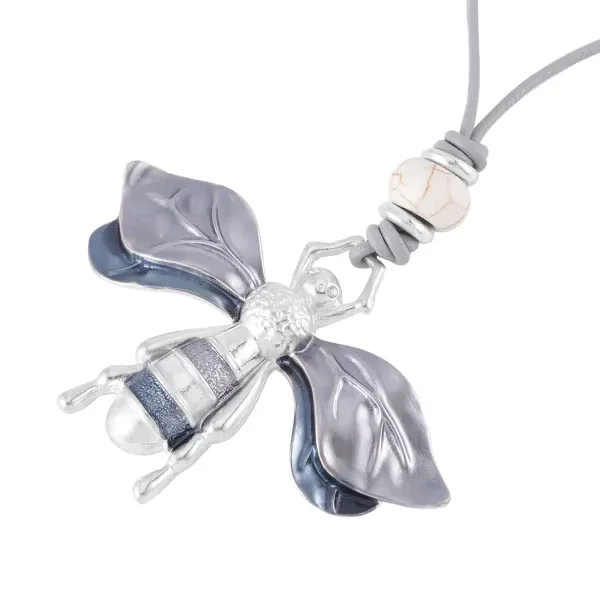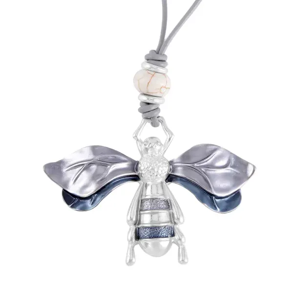 Add artistic character to your jewelry collection with this Grey Agate and White Howlite Bee Pendant Necklace. Designed with sculpted enameled wings and natural stone accents, this bold pendant blends modern edge with nature-inspired detail.