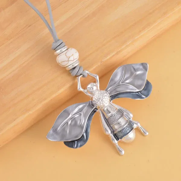 Grey Agate & White Howlite Bee Pendant Necklace – Silvertone
