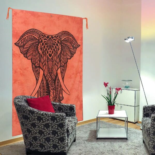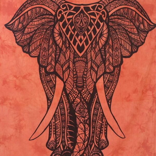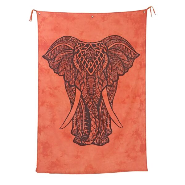 🐘 Orange Elephant Cotton Tie-Dye Tapestry – 52″ x 82″ Wall Hanging (Made in India)