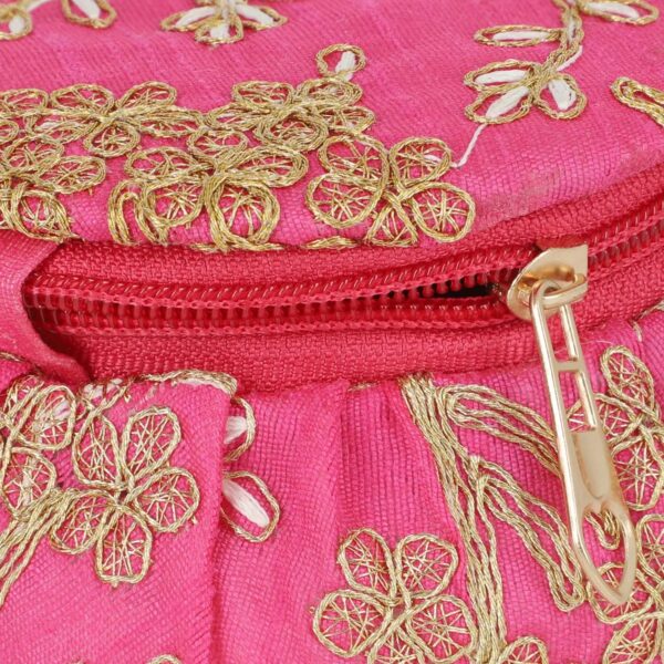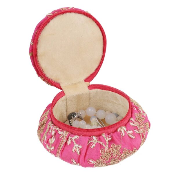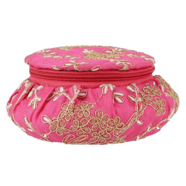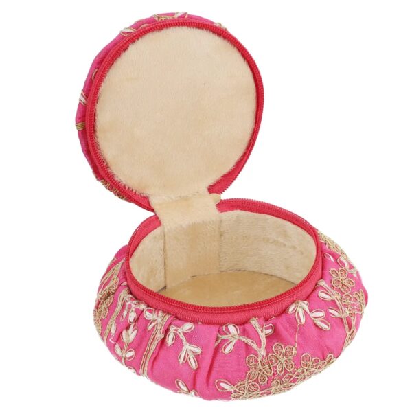 ✨ Pink Embroidered Brocade Pot Jewelry Box – Velvet Lined Matki Keepsake with Zipper | 5.5”