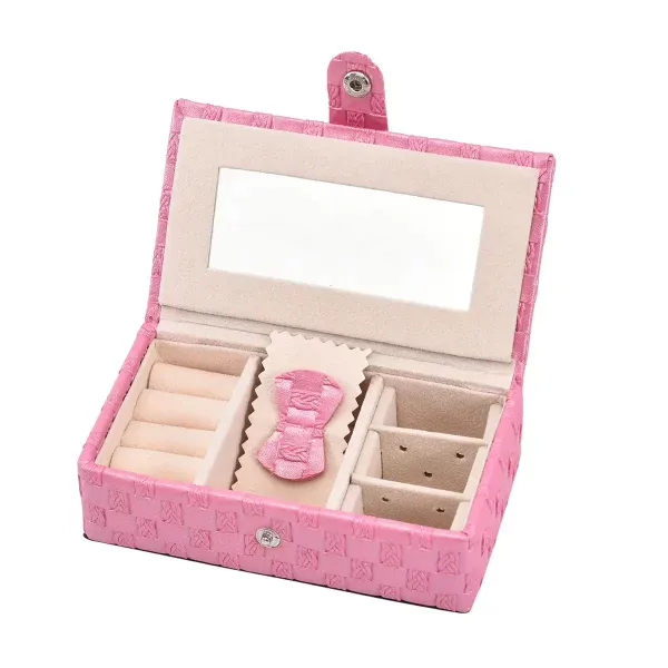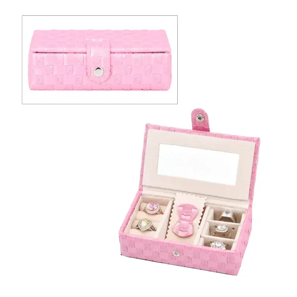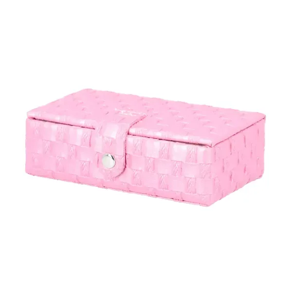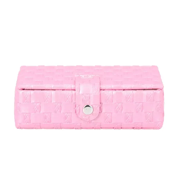 Store your jewelry in style with this pink woven faux leather travel jewelry box. Designed for compact organization, this small jewelry case keeps your pieces protected while adding a refined touch to your vanity or travel bag.