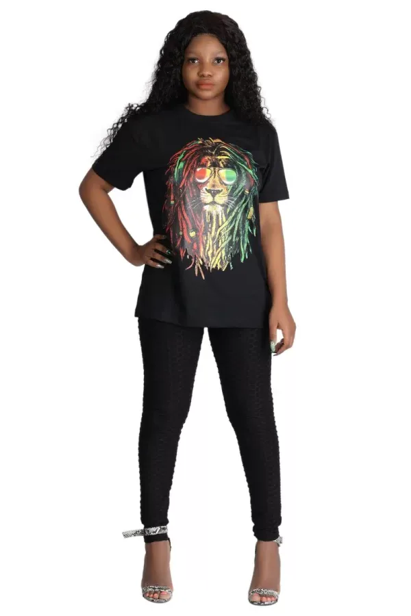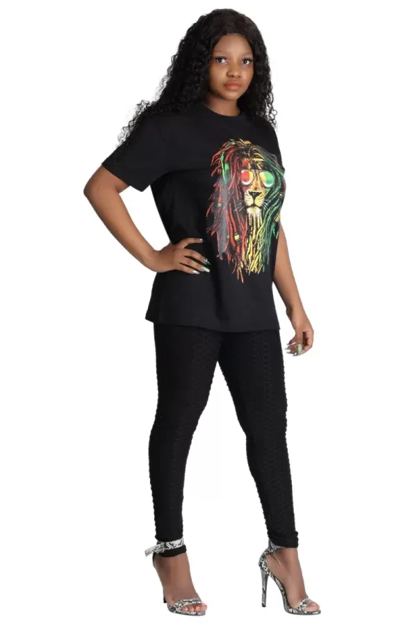 Stand out in the crowd with this Rasta lion t-shirt! The unique design is sure to turn heads and make a statement.