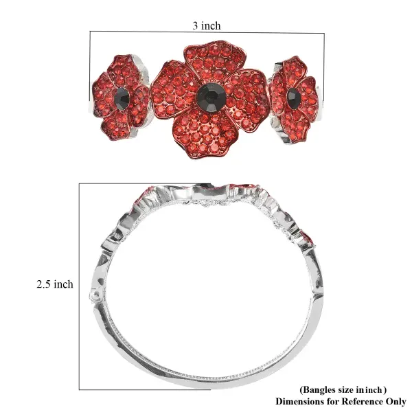 ❤️ Crimson Bloom Poppy Crystal Bangle – Red & Black Austrian Crystals | Silvertone | 7” |