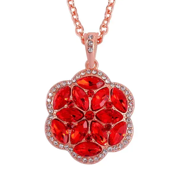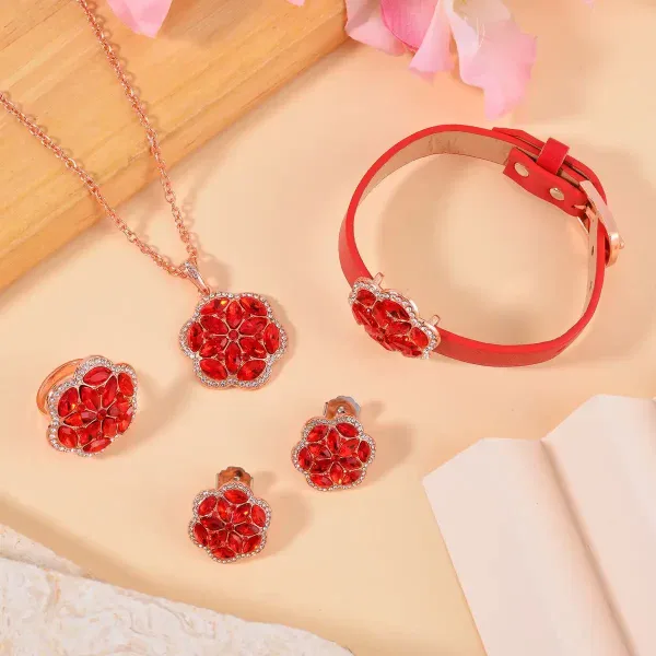 ❤️ Red & White Austrian Crystal Floral Jewelry Set – 5-Piece Statement Collection in Rosetone