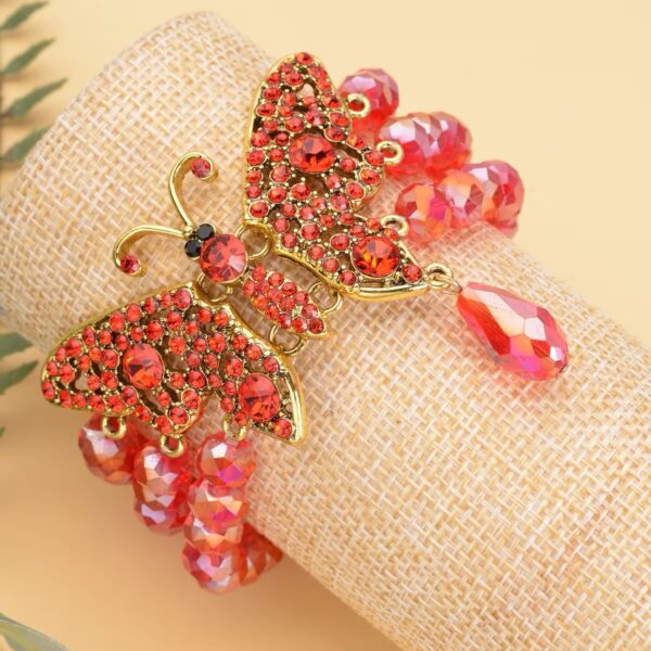 The Scarlet Monarch Butterfly Bracelet blends vibrant red glass beads with sparkling Austrian crystals in a dramatic butterfly centerpiece designed to represent transformation, strength, and renewal.