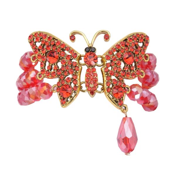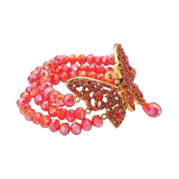302 – Scarlet Monarch Butterfly Crystal Stretch Bracelet – Goldtone