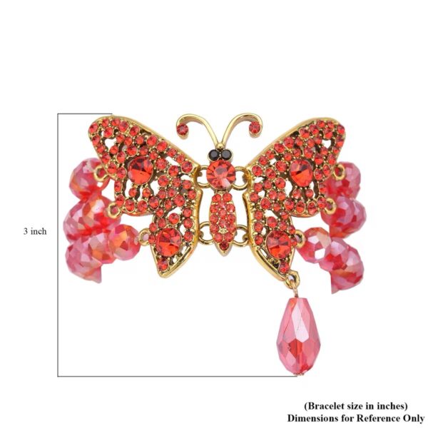 ❤️ Scarlet Monarch Butterfly Crystal Stretch Bracelet – Goldtone | 7.5” |