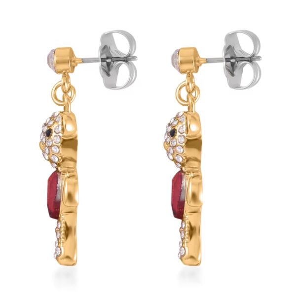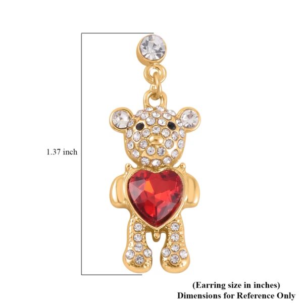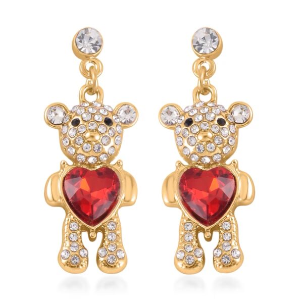 ❤️ Red Heart Teddy Bear Crystal Dangle Earrings – Austrian Crystal | 35mm | Goldtone