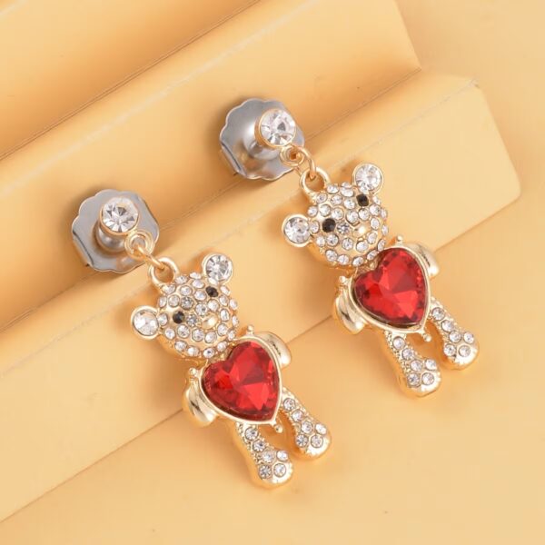 71 – Red Heart Teddy Bear Crystal Dangle Earrings
