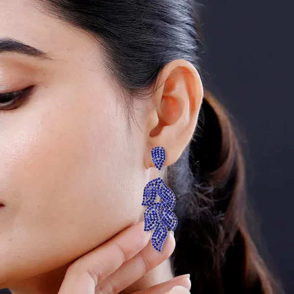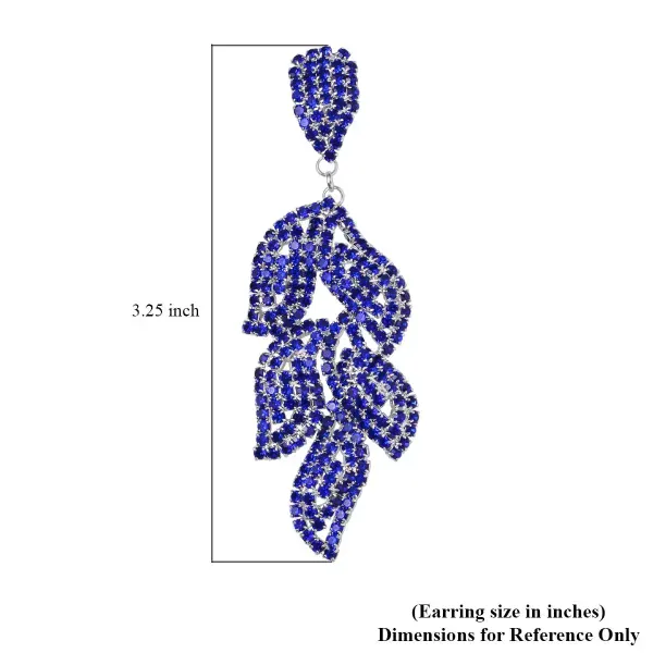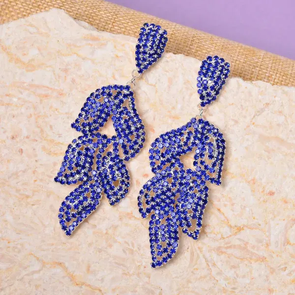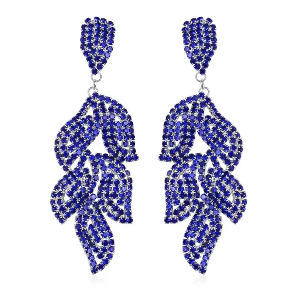 Command attention with these Blue Cascade Leaf Crystal Dangle Earrings, featuring 90 shimmering Austrian crystals arranged in a flowing, nature-inspired silhouette. Designed for dramatic movement and radiant brilliance, these long statement earrings deliver bold sparkle without heavy weight.