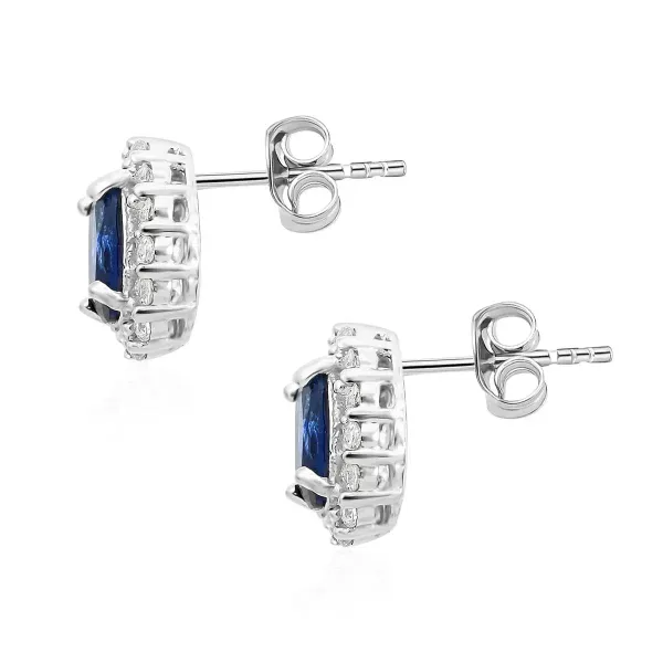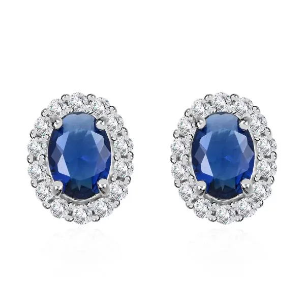 Capture timeless elegance with these Royal Blue Halo Stud Earrings, featuring oval simulated blue diamonds surrounded by a brilliant halo of colorless stones. With 3.25 carats total weight, this classic design delivers refined sparkle in a compact, sophisticated silhouette.