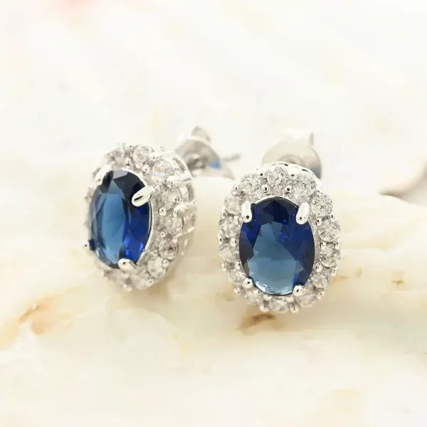 These royal blue halo studs pair beautifully with formal dresses, business wear, bridal looks, or polished everyday outfits.