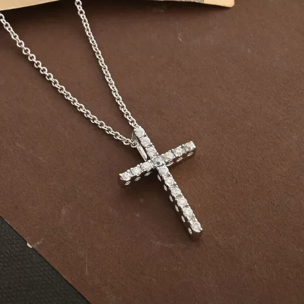 ✝️ Simulated Diamond Cross Necklace in Silvertone – 1.25 ctw | 18 Inches