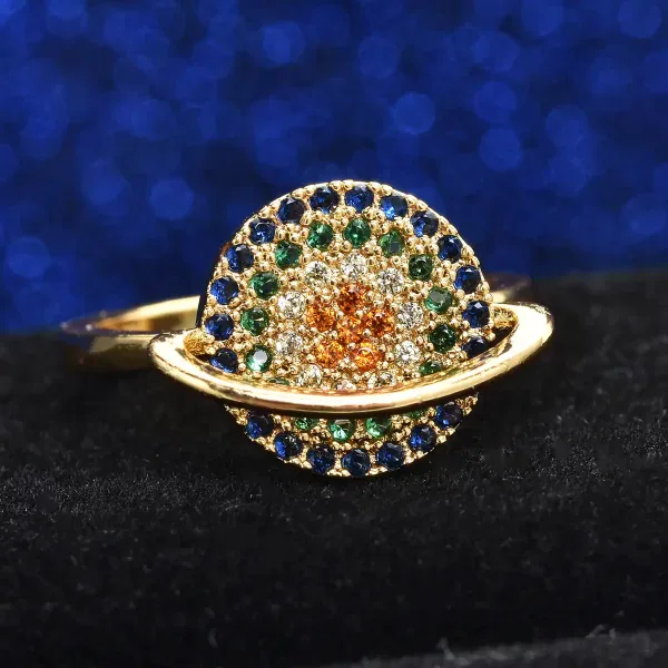 Multi-Color Simulated Diamonds | Gold Tone | Adjustable (Sizes 7–9)
