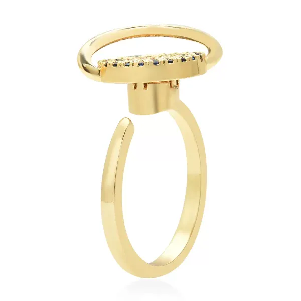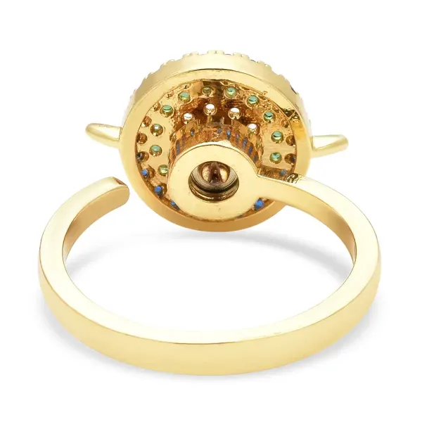 Featuring 65 multi-color simulated diamonds arranged in a full-coverage cluster design, this statement piece creates playful brilliance from every angle. The polished gold tone finish enhances the vivid stone arrangement, while the adjustable band ensures a comfortable fit.