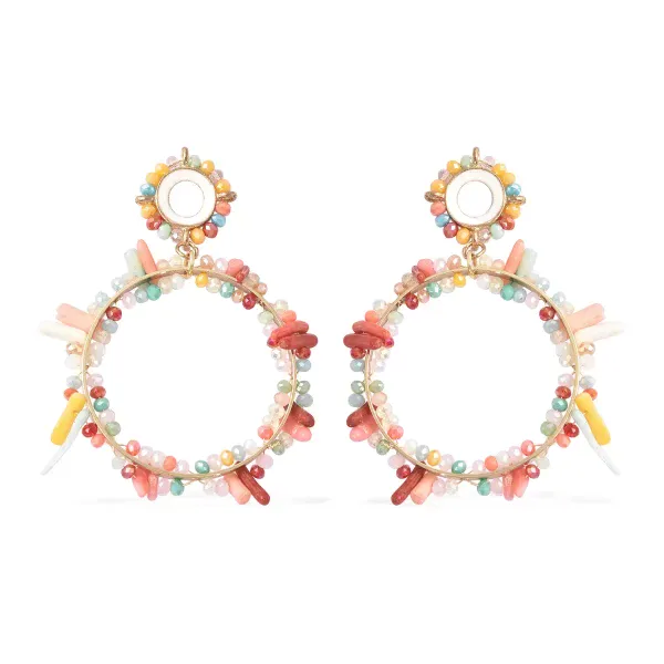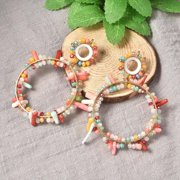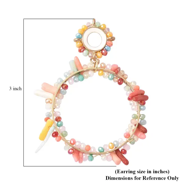 Add playful color and free-spirited charm to your collection with these Boho Bloom Hoop Earrings. Featuring a vibrant mix of simulated coral and multicolor glass beads, these oversized 75mm hoops bring joyful movement and artistic flair to any look.