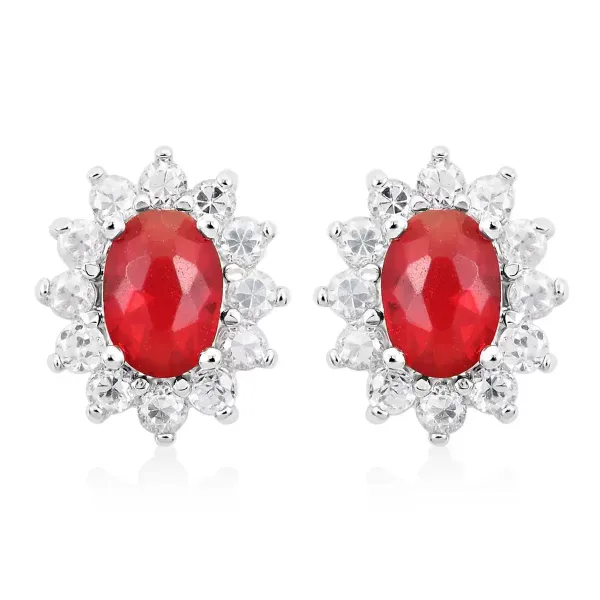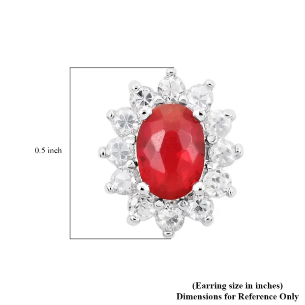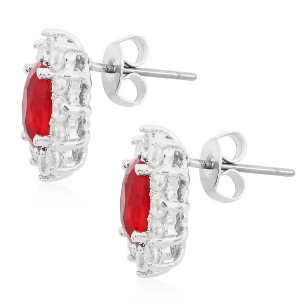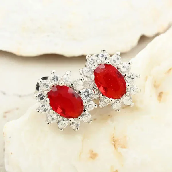 Make a bold yet timeless statement with these Radiant Rouge Sunburst Stud Earrings. Each earring features a vibrant 8×6 mm simulated ruby center framed by a halo of sparkling white simulated stones for brilliant light-catching shine.