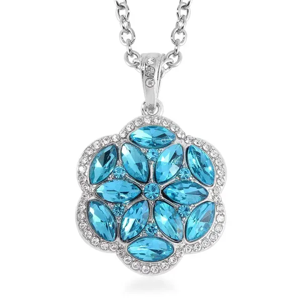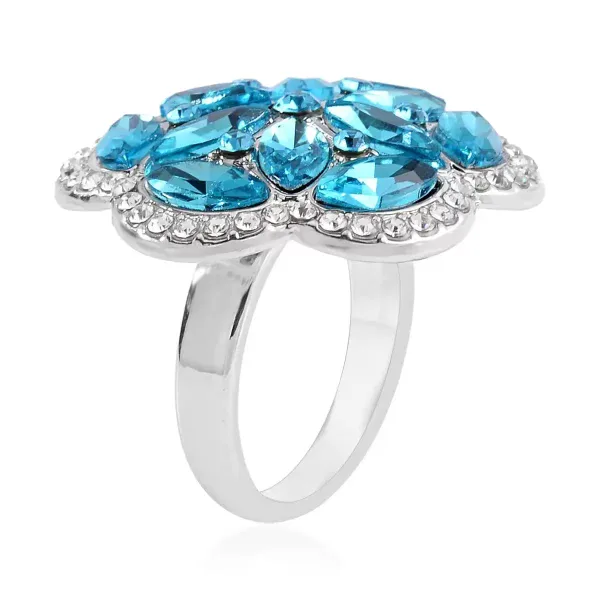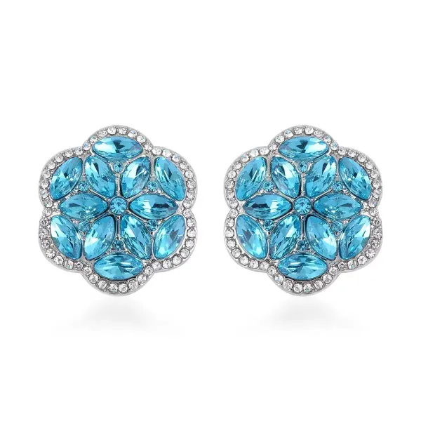 This Sky Blue Austrian Crystal Jewelry Set features shimmering sky blue and white stones arranged in a sculpted marquise-cut floral design. Finished in sleek silvertone with a coordinating faux leather bracelet, this 5-piece collection delivers polished sparkle for both special occasions and everyday glamour.