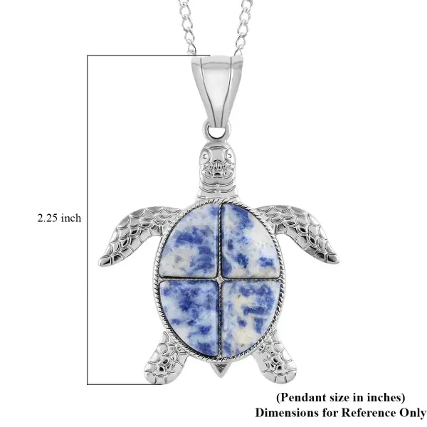 Sodalite Turtle Pendant Necklace – Genuine Blue Gemstone | Silvertone | 18 Inches