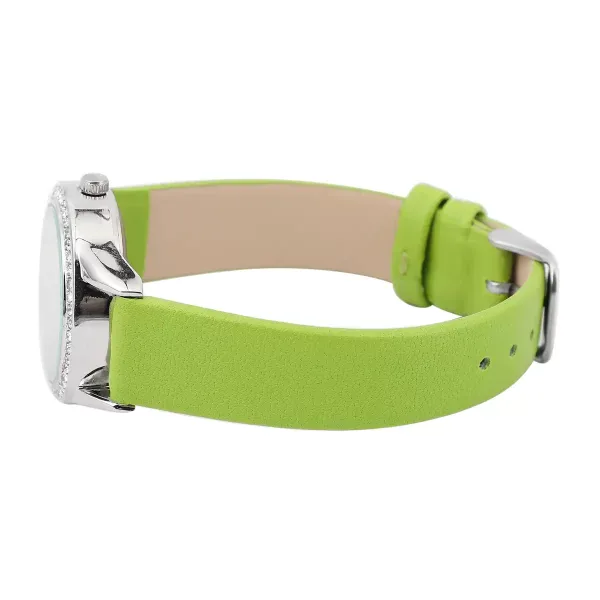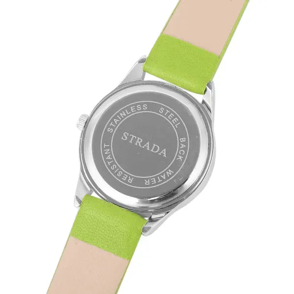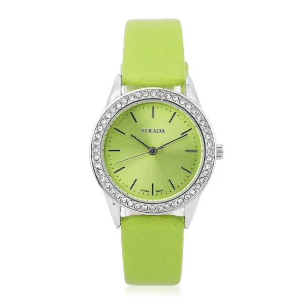 Make a bold statement with this STRADA Austrian Crystal Watch, designed to turn heads with its vibrant lime green vegan leather strap and crystal-accented bezel.