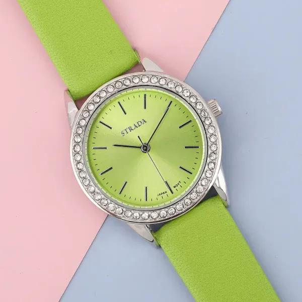 💚 STRADA Austrian Crystal Watch – Lime Green Vegan Leather Strap | Japanese Movement