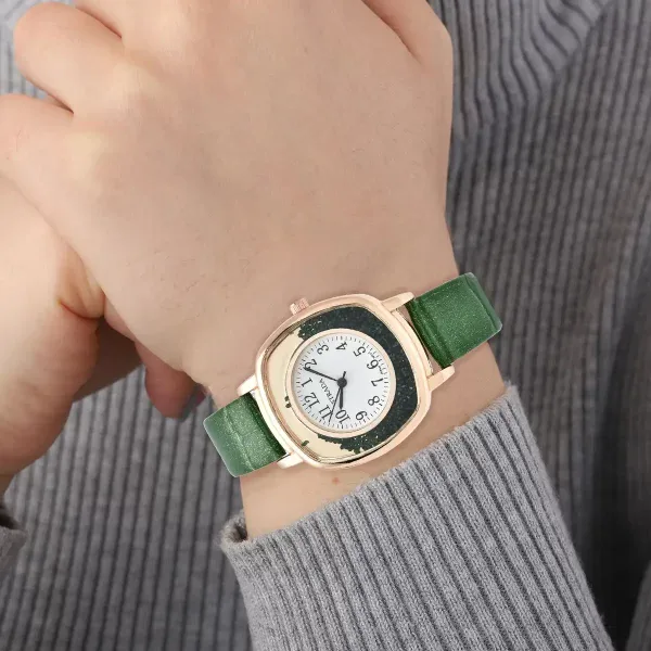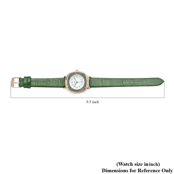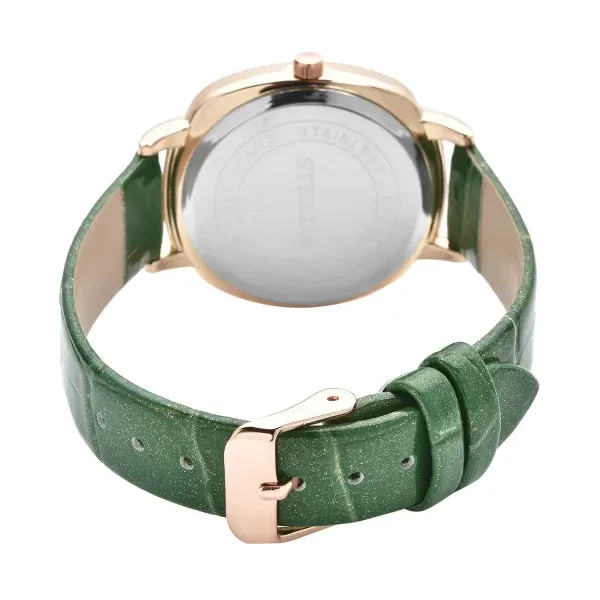Powered by precise Japanese quartz movement, it ensures dependable timekeeping while maintaining a sleek, polished aesthetic. The soft faux leather strap offers a comfortable fit and secures with a traditional buckle closure, making it perfect for both casual and dressier occasions.