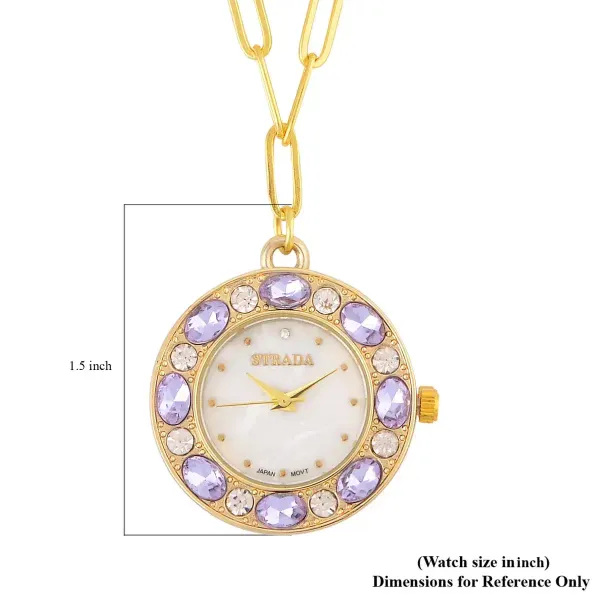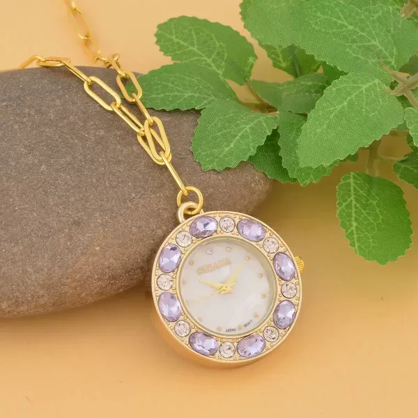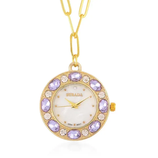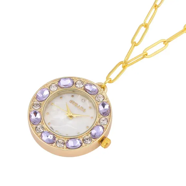 Strada Crystal Pendant Watch Necklace – Purple & Gold