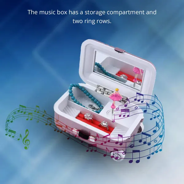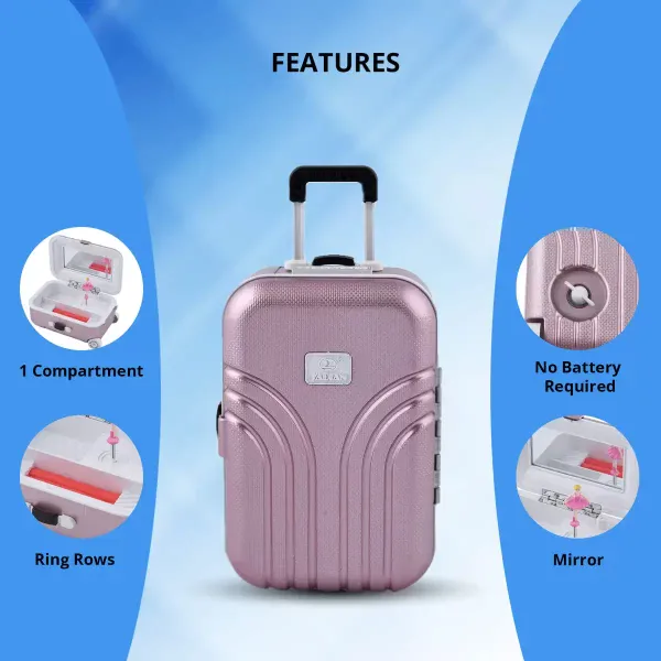 Because of its compact size, this musical jewelry box is perfect for small treasures, rings, or keepsakes. At the same time, the suitcase design makes it stand out as a decorative accent.