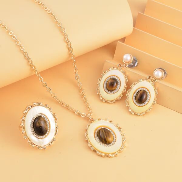 Tiger’s Eye 3-Piece Jewelry Set – Necklace, Earrings & Ring