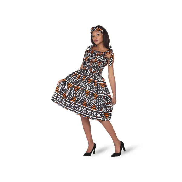 Whether you’re headed to a summer gathering, cultural celebration, or brunch with friends, this piece brings boldness and beauty to your wardrobe. The striking orange, black, and white pattern evokes the warmth of tribal fire and the spirit of African heritage.