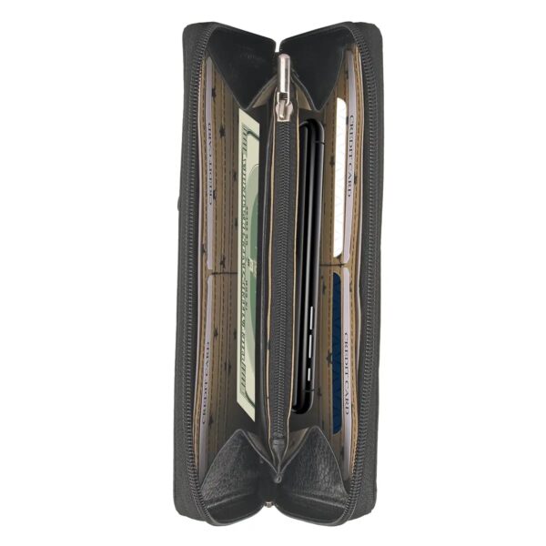 Union Code Black Genuine Leather RFID Zip Wallet (7.5”)