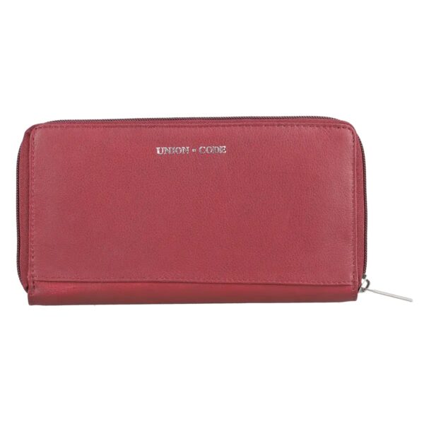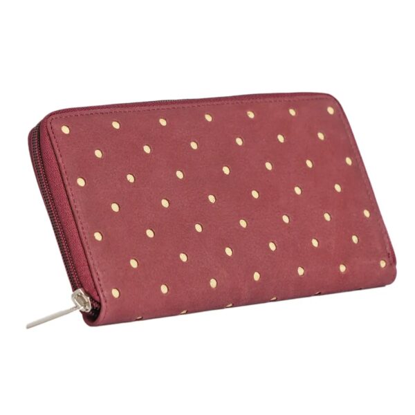 Union Code Burgundy Polka Dot Genuine Leather RFID Zip Wallet