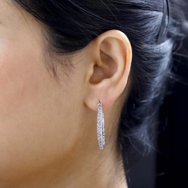 These violet crystal hoop earrings pair beautifully with evening dresses, wedding attire, cultural celebrations, or elegant workwear.