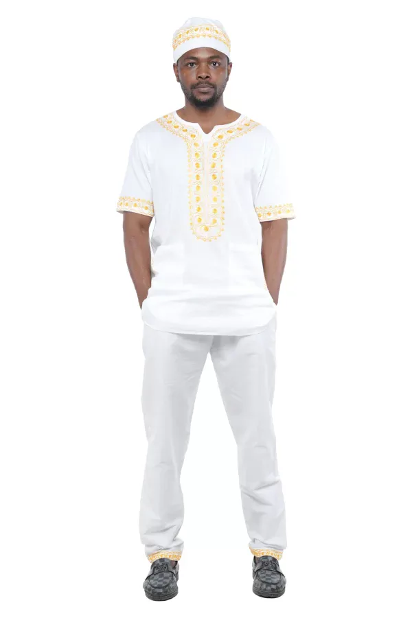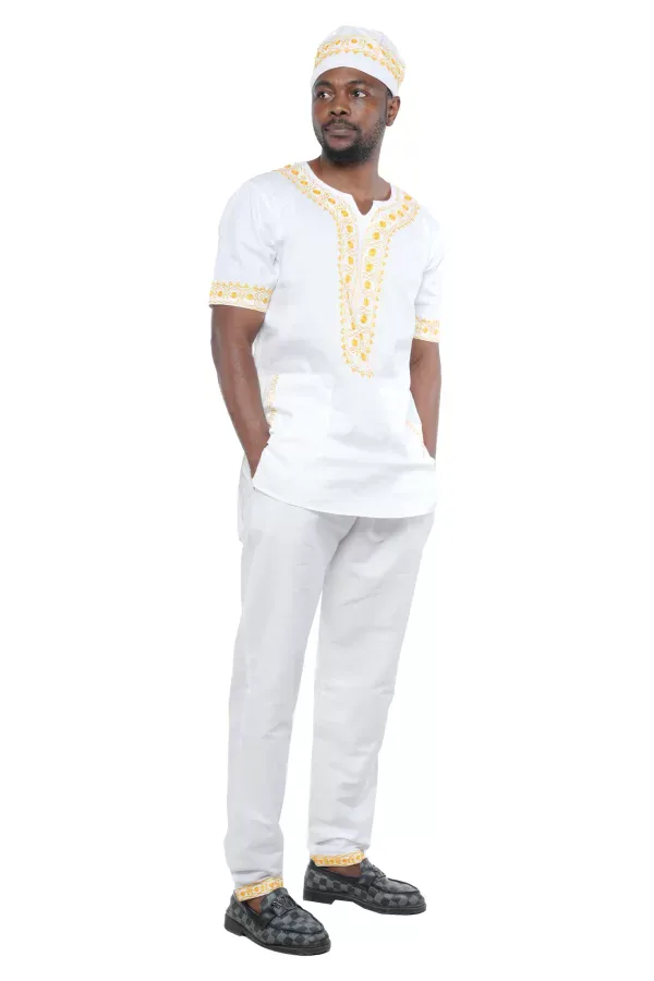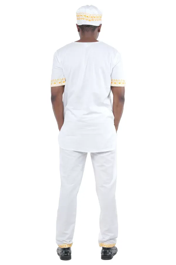 03 -Men’s White & Gold Embroidered Cotton Pant Set (Large)