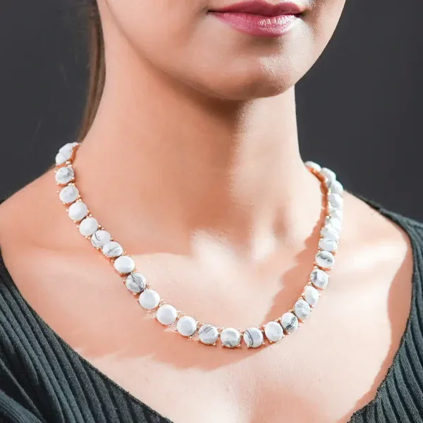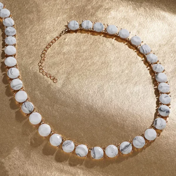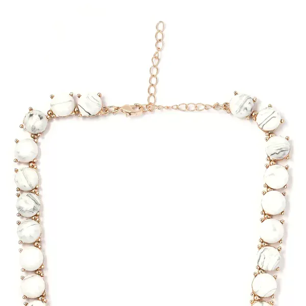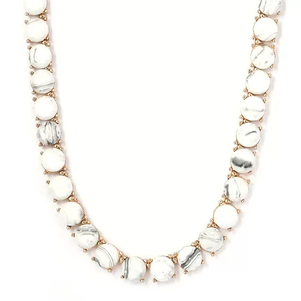 Make a bold impression with this white resin statement necklace. Designed with oversized resin elements framed in polished goldtone metal, this piece delivers modern structure and effortless impact.